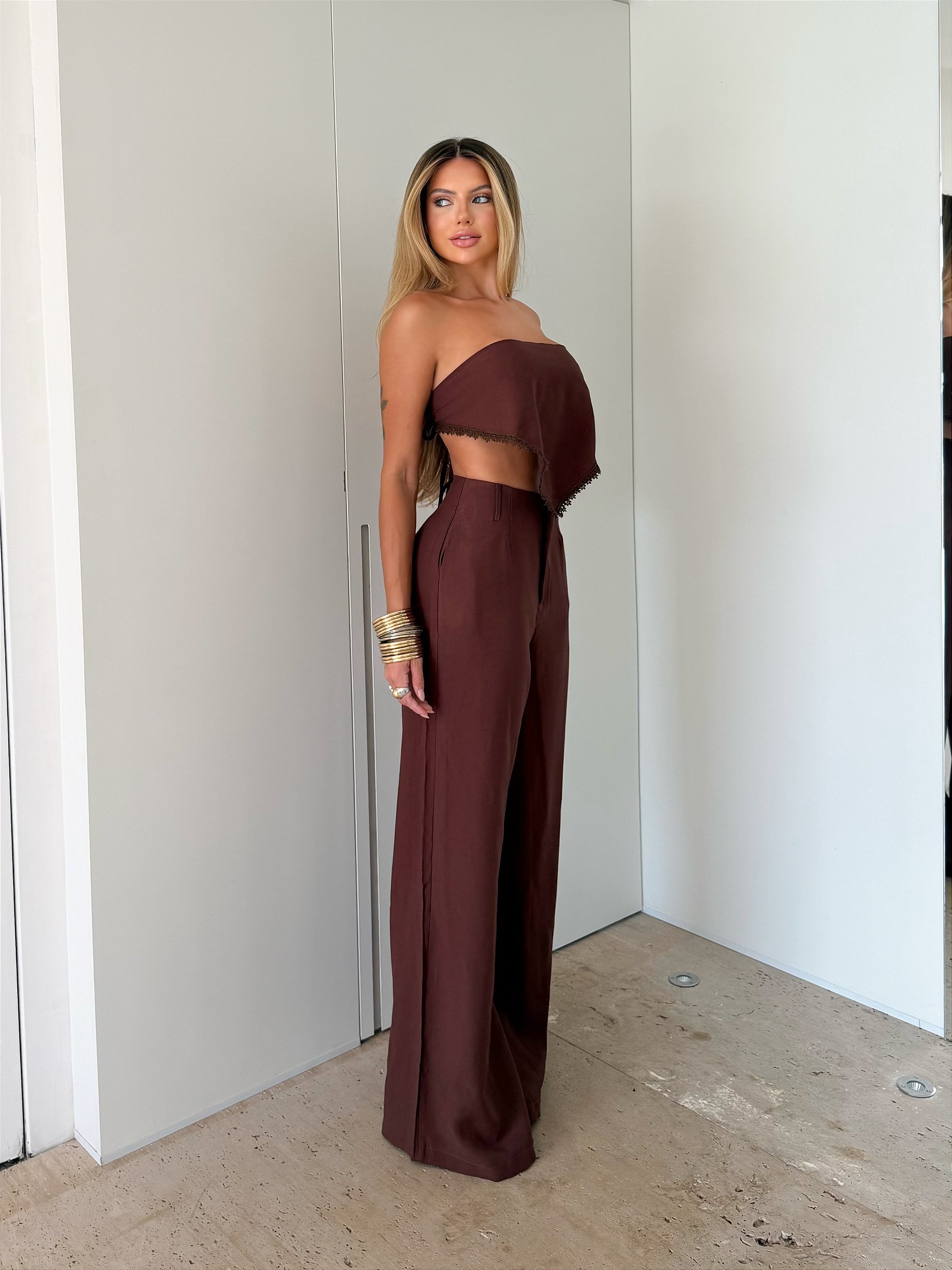 Calça com top lenço em tecido Marrant de alta qualidade.